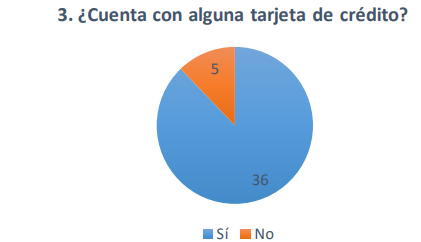 También se les cuestionó si cuentan con una tarjeta de crédito de los 42 encuestados, 36 de ellos mencionan que si cuentan con una tarjeta de crédito y solo 5 de ellos mencionaron que no. Dichos datos muestran que el 88% de los académicos tienen endeudamiento.