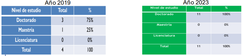 Por cuanto al Programa de Estímulo al Desempeño Académico (PEDPA), es menester señalar que también hubo un incremento en el número de docentes participantes, pasando de 10 a 15, dentro del período de 2019 a 2023, lo que significa que nuestra plantilla docente ha elevado su producción académica, su participación en actividades de vinculación y tutorías, lo que ha conllevado a contar con un profesorado más capacitado, eficaz y eficiente en su labor educativa.